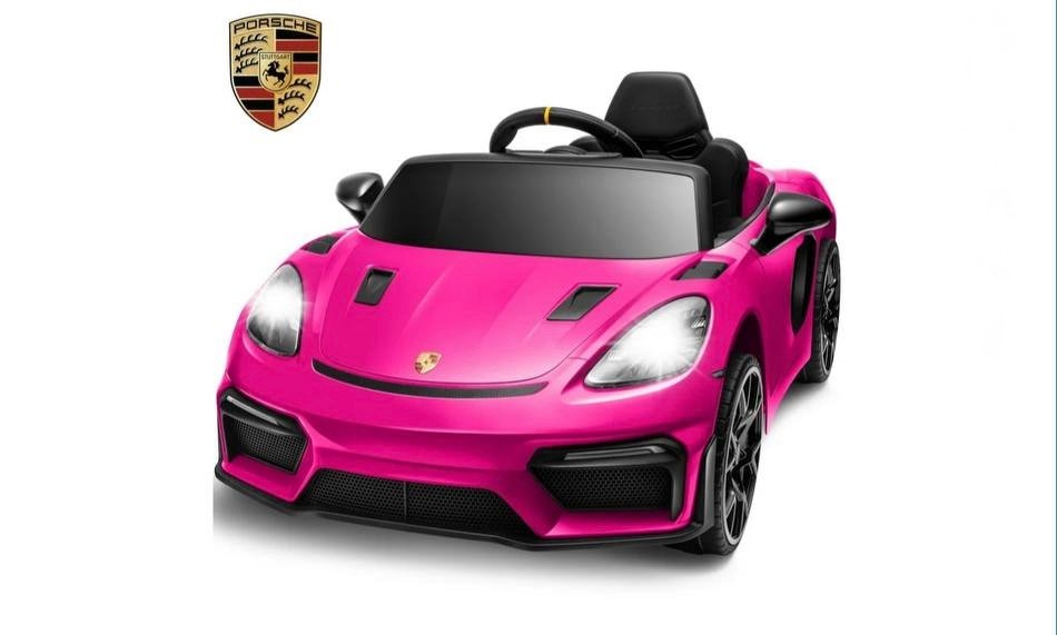$169.99 Porsche 718 12V Powered Ride on Toys, Kids Ride on Cars Sports Car with Remote Control, 4 Wheel Suspension, Bluetooth, Music, LED, Safety Belts, Electric Car