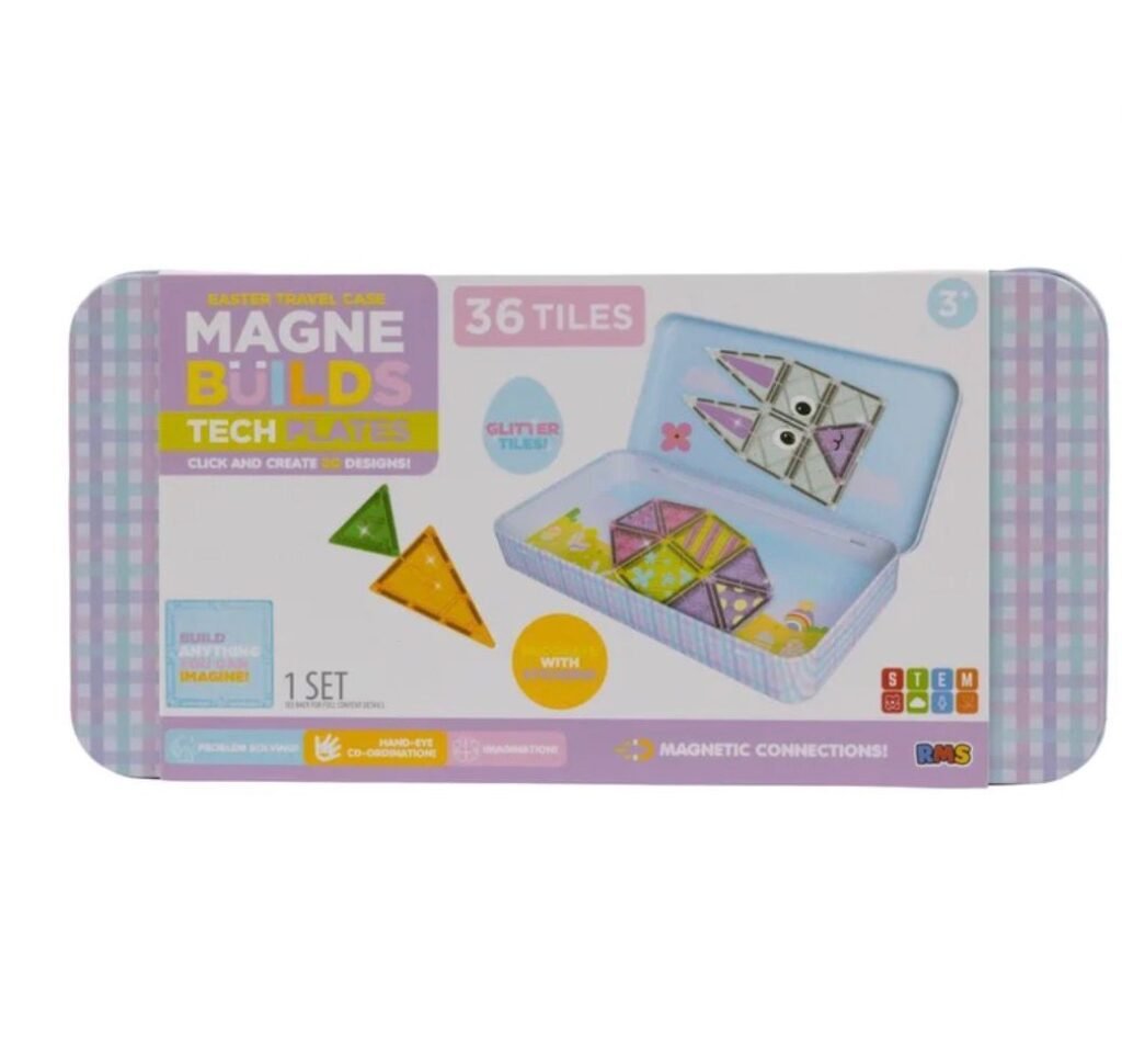Add a fun and educational touch to your Easter baskets with the RMS Easter Bunny Magnetic Tile Tins. This STEM toy set includes colorful magnetic building tiles in a reusable storage tin, making it an engaging gift for kids ages 3 and up. Perfect for encouraging creativity, problem solving, and hands-on play, these magnetic tiles double as both a toy and a collectible seasonal gift.