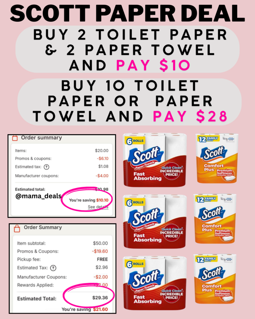 – Add 2 Scott Toilet Paper and 2 Scott Paper Towels