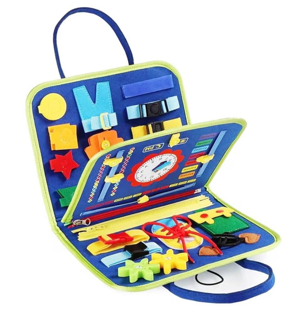 The activity board features a variety of textures, latches, buttons, and moving parts that keep little hands busy while encouraging curiosity and learning. It’s an excellent addition to any early learning toy collection and can help toddlers and preschoolers build confidence through hands?on exploration.