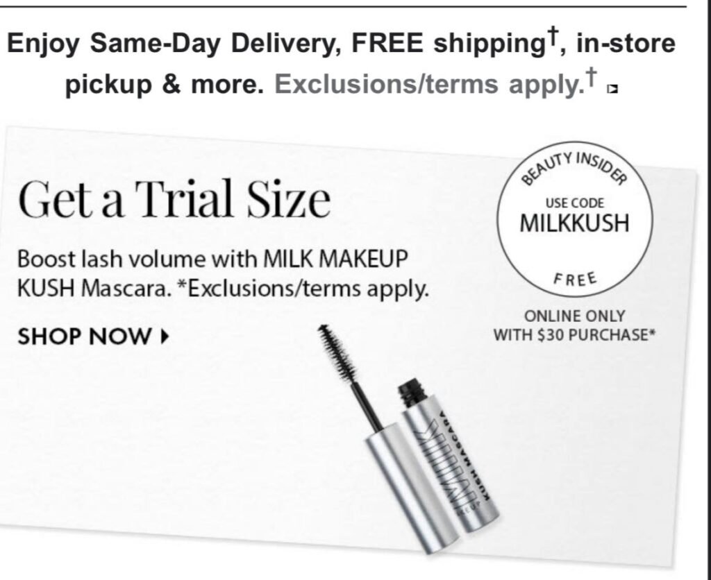 Free Trial Size Milk Make-up Kush Mascara with an online $30 purchase