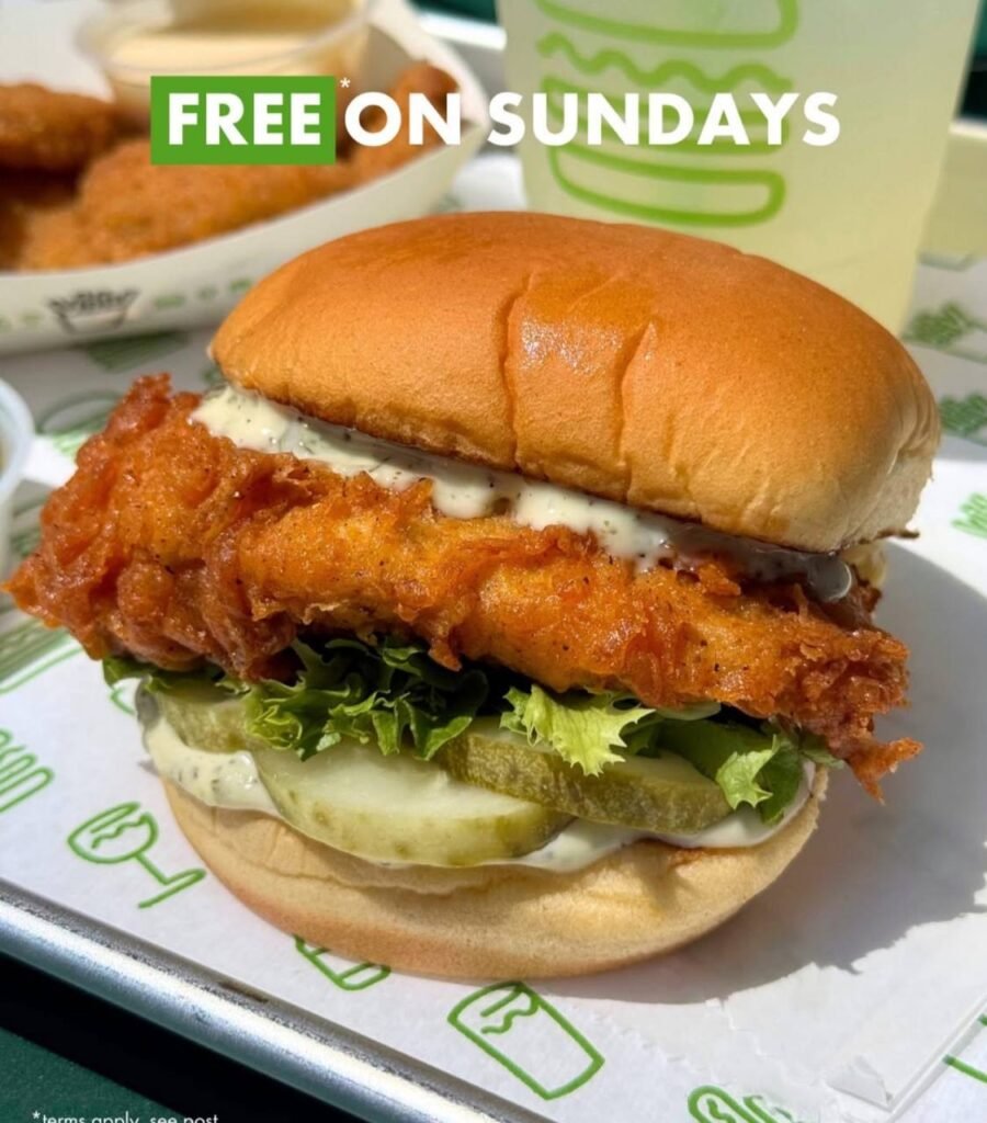 Shake Shack has officially brought back Chicken Sundays, where you can score a FREE Chicken Shack sandwich every Sunday with a qualifying purchase.