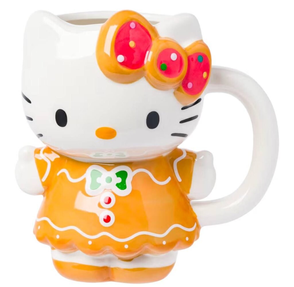 Bring festive cheer to your mornings with the Silver Buffalo Sanrio Hello Kitty Gingerbread Dress 3D Sculpted Ceramic Mug, now priced at just $7.xx at Amazon. This adorable and collectible mug features Hello Kitty in a charming gingerbread dress design, making it perfect for the holidays or for any Hello Kitty fan.