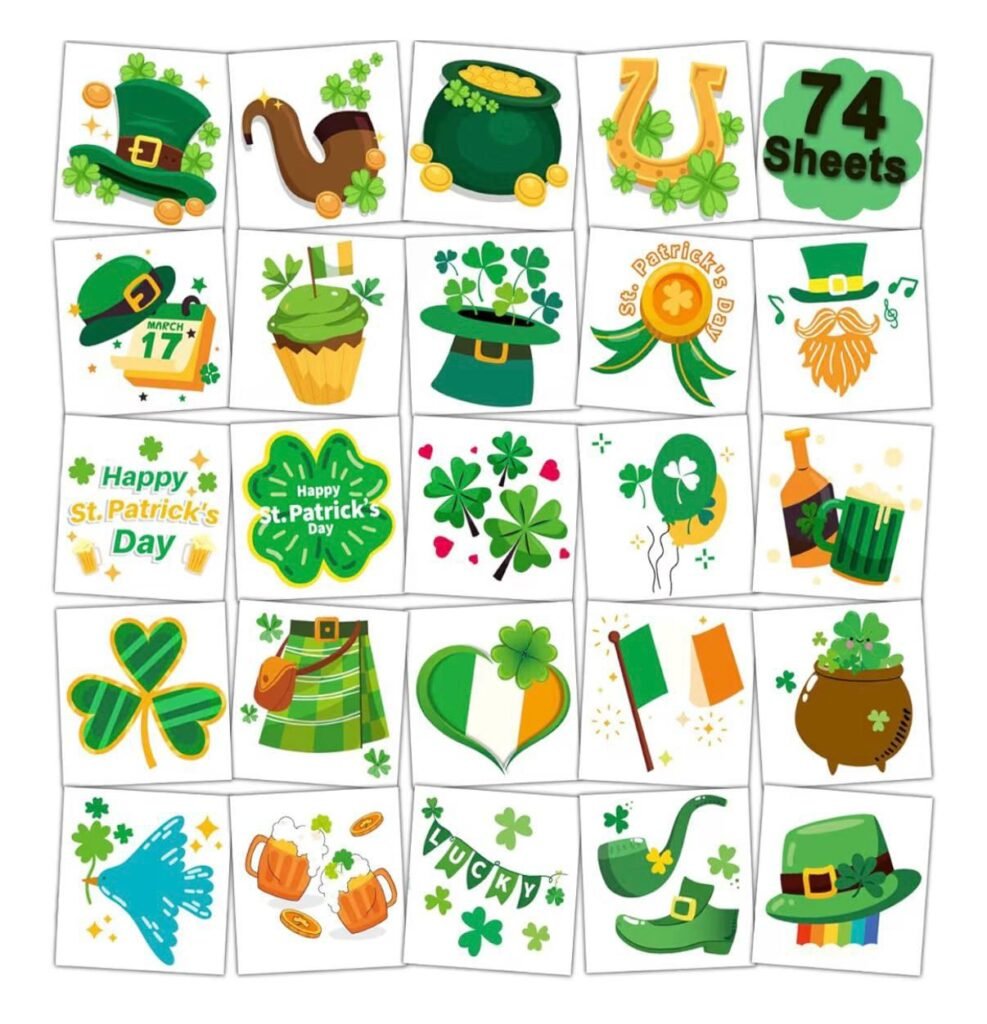 • Includes seventy four individually designed sheets of St Patrick’s Day temporary tattoos