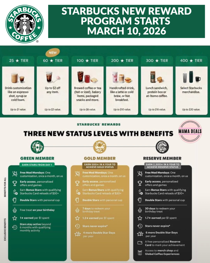 Starbucks is rolling out a brand-new Starbucks Rewards program beginning March 10, 2026, bringing major changes to how customers earn and redeem Stars.