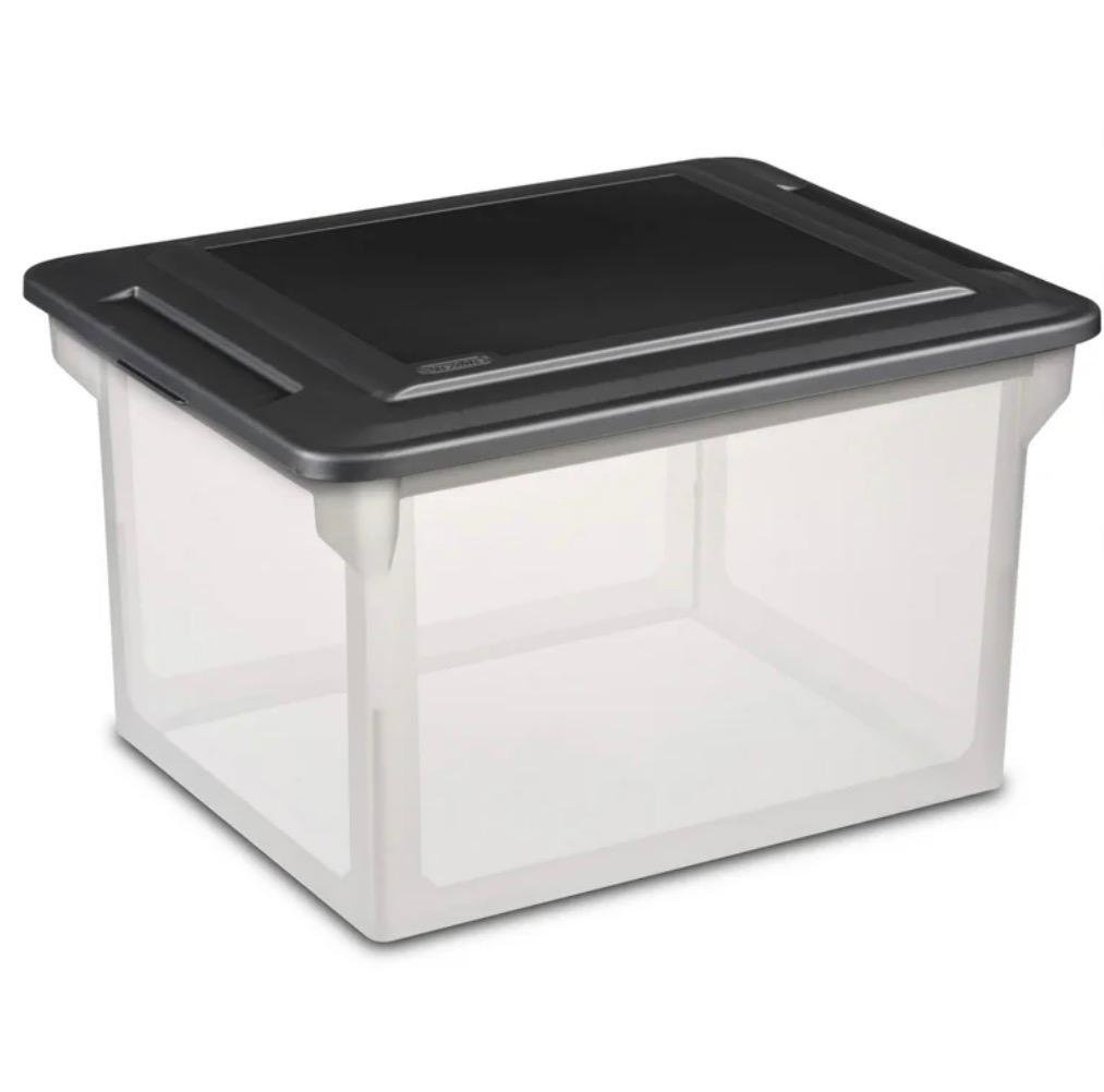 Stay organized with the Sterilite File Box featuring a clear plastic base and black lid, now priced at $8.97 at Walmart. This practical storage solution is ideal for keeping paperwork, files, school projects, or home office materials neat and accessible. Its transparent design makes it easy to see the contents inside, while the black lid snaps securely to help protect items from dust. Great for closets, offices, dorm rooms, or utility spaces where tidy storage matters.