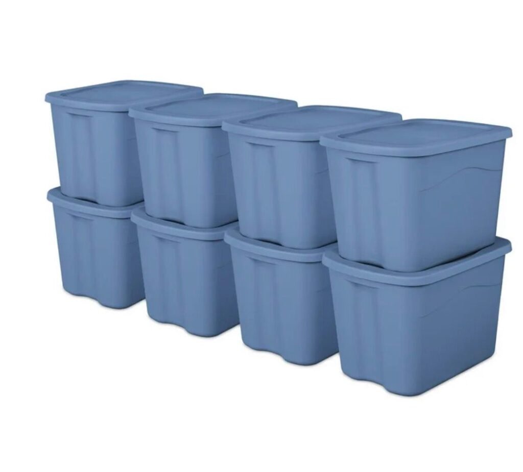 If you are looking for an easy way to organize your home, garage, or storage space, this Sterilite large storage bin set is a practical solution. This bundle includes eight durable 18 gallon plastic storage totes designed to help keep items protected and neatly stored. The snap on lids help secure the contents while the sturdy plastic construction makes them ideal for long term storage. These bins are perfect for organizing seasonal decorations, clothing, household supplies, toys, or garage items while keeping everything easily accessible.
