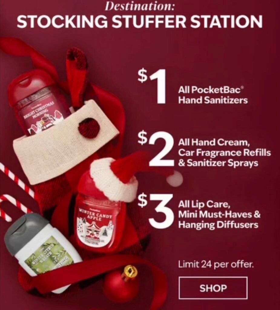 If you’re looking for affordable holiday gifts, Bath & Body Works just launched their Stocking Stuffer Station today, and prices start as low as $1! This limited-time in-store and online event is perfect for stocking stuffers, teacher gifts, coworkers, Secret Santa exchanges, and last-minute holiday gifting. With fan-favorite scents and must-have essentials, you can grab PocketBacs, hand creams, lip care, and more without breaking the bank.