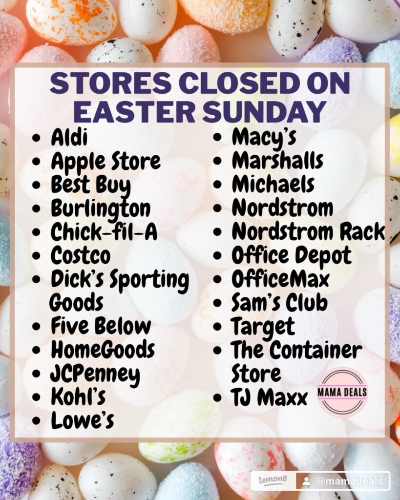 Many major retailers close for Easter, so it’s important to plan ahead for groceries, last-minute items, and family needs.