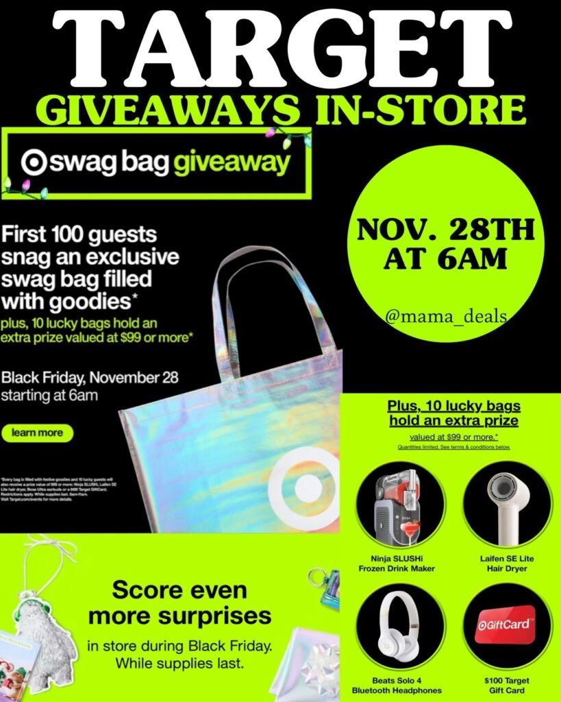This is a must-shop event for Target lovers, deal hunters, and holiday shoppers looking for a little extra cheer! Whether you’re looking for gifts or hoping to win a surprise prize, Target’s swag bag giveaway is the perfect kickoff to Black Friday shopping.