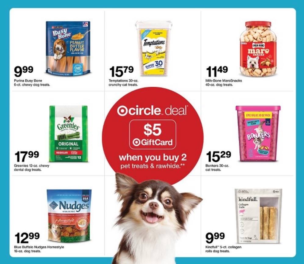 • Target Circle Deal: $5 Target GiftCard with 2 select pet treats! Good Boy!