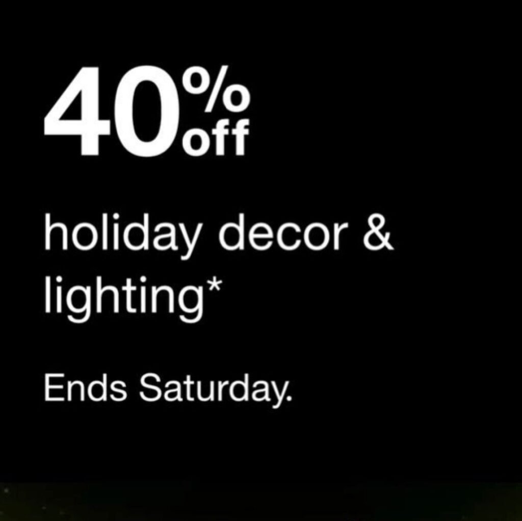 • Save 40% on select holiday décor and lighting items