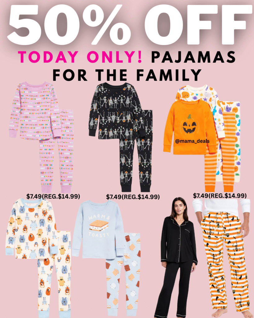 If you’ve been waiting for the perfect time to refresh your family’s pajama drawer, Old Navy is offering 50% off cozy pajamas for men, women, kids, toddlers, and babies—today only! This limited-time “Today Only Deal” includes popular holiday pajama sets, matching family pajamas, and flannel favorites that are perfect for lounging at home or snapping festive family photos.