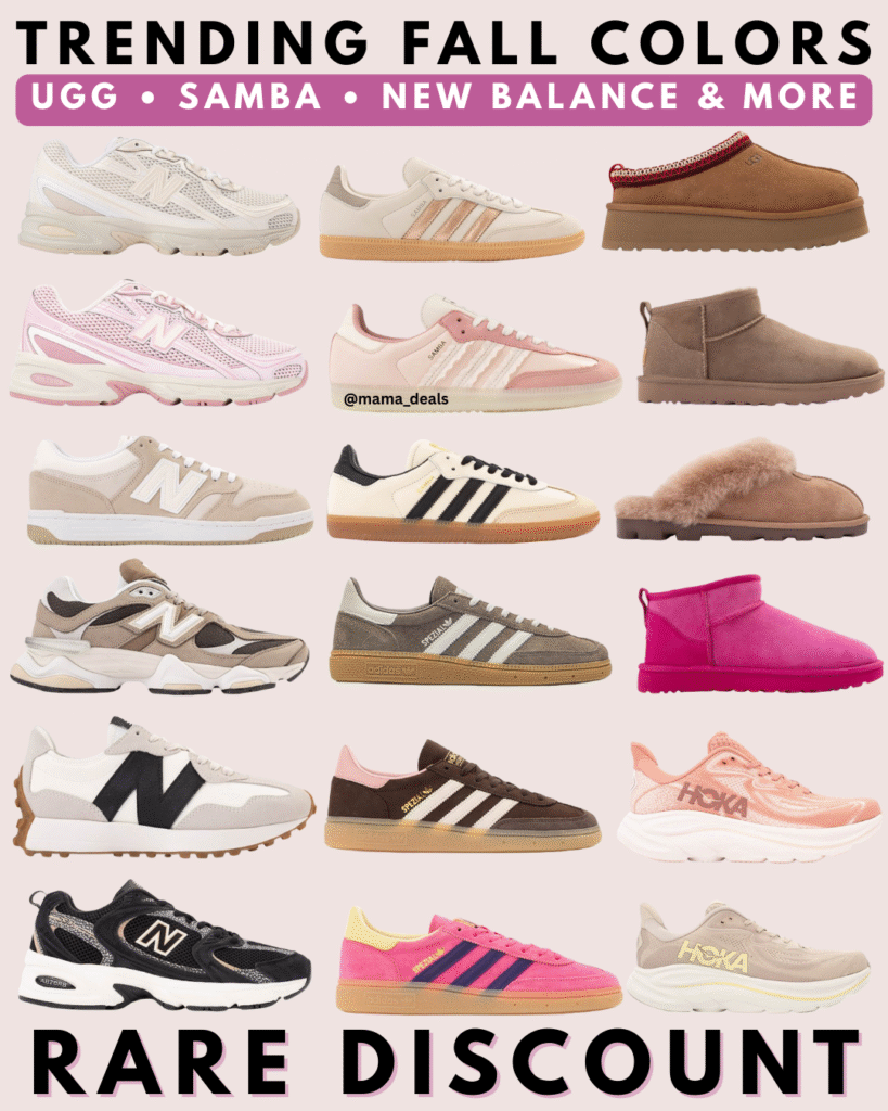 – Valid on select fall color trend collections including UGG, New Balance, Adidas Samba, HOKA, and more