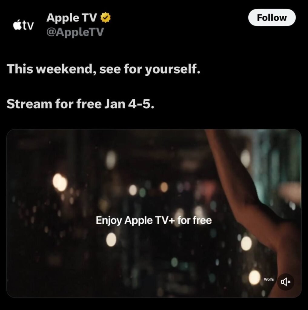 All you need is an Apple Account, and you can watch free from any device with an Apple TV app (including many smart TVs).