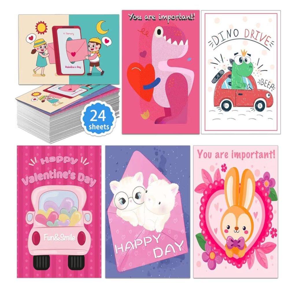 These Valentine’s Day cards for kids are perfect for school classroom exchanges, parties, and small Valentine gifts. Each set includes 24 sheets of kid-friendly Valentine cards designed for easy sharing and fun celebrations. With an automatic discount applied in the cart, this deal makes it affordable to stock up for classrooms, homeschool groups, or party favors while keeping things simple and festive.