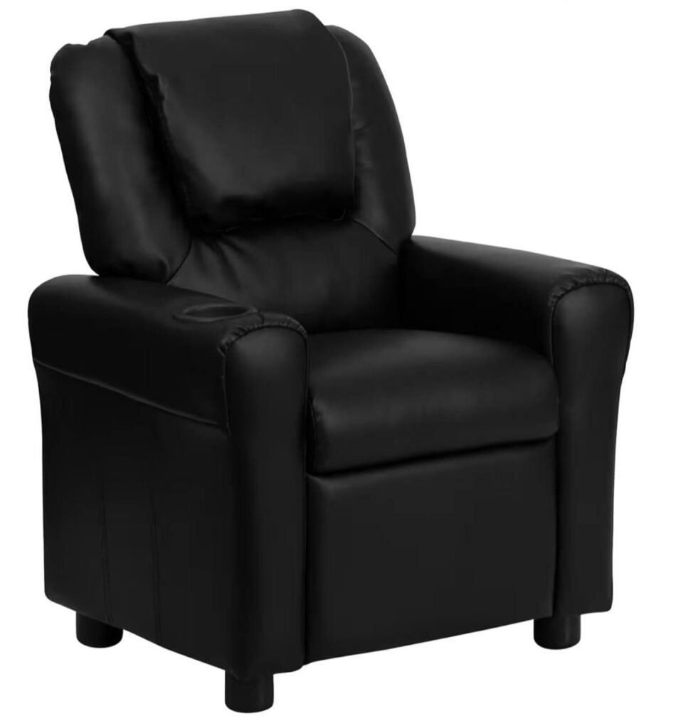 Give your child a cozy and stylish spot to relax with the Flash Furniture Vana LeatherSoft kids recliner. This contemporary reclining chair is designed for comfort and safety, featuring a supportive headrest, built-in cup holder, and a secure recline mechanism. Perfect for reading, gaming, or watching movies, it’s a practical addition to any kid’s bedroom or playroom.