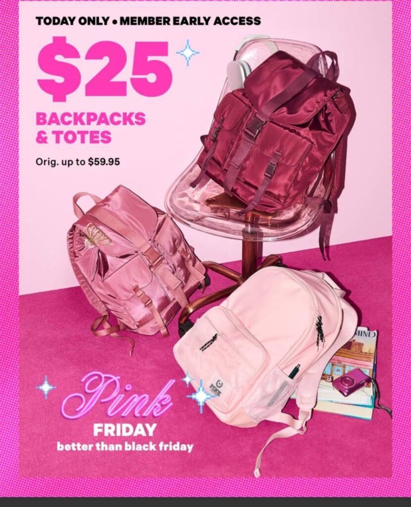 Victoria’s Secret Pink Backpacks & Totes for $25 for Members!