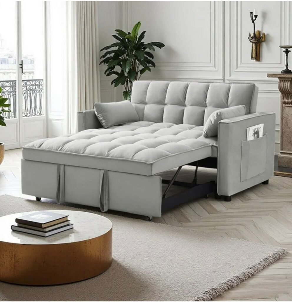 This Vinform 54? 3-in-1 convertible sleeper sofa bed offers versatile seating and sleeping solutions for small spaces. Designed to function as a loveseat, sofa, and pull-out sleeper, it’s perfect for living rooms, dens, offices, or guest areas. The gray upholstery and built-in storage pocket enhance both comfort and convenience, making this a great value piece for everyday use.