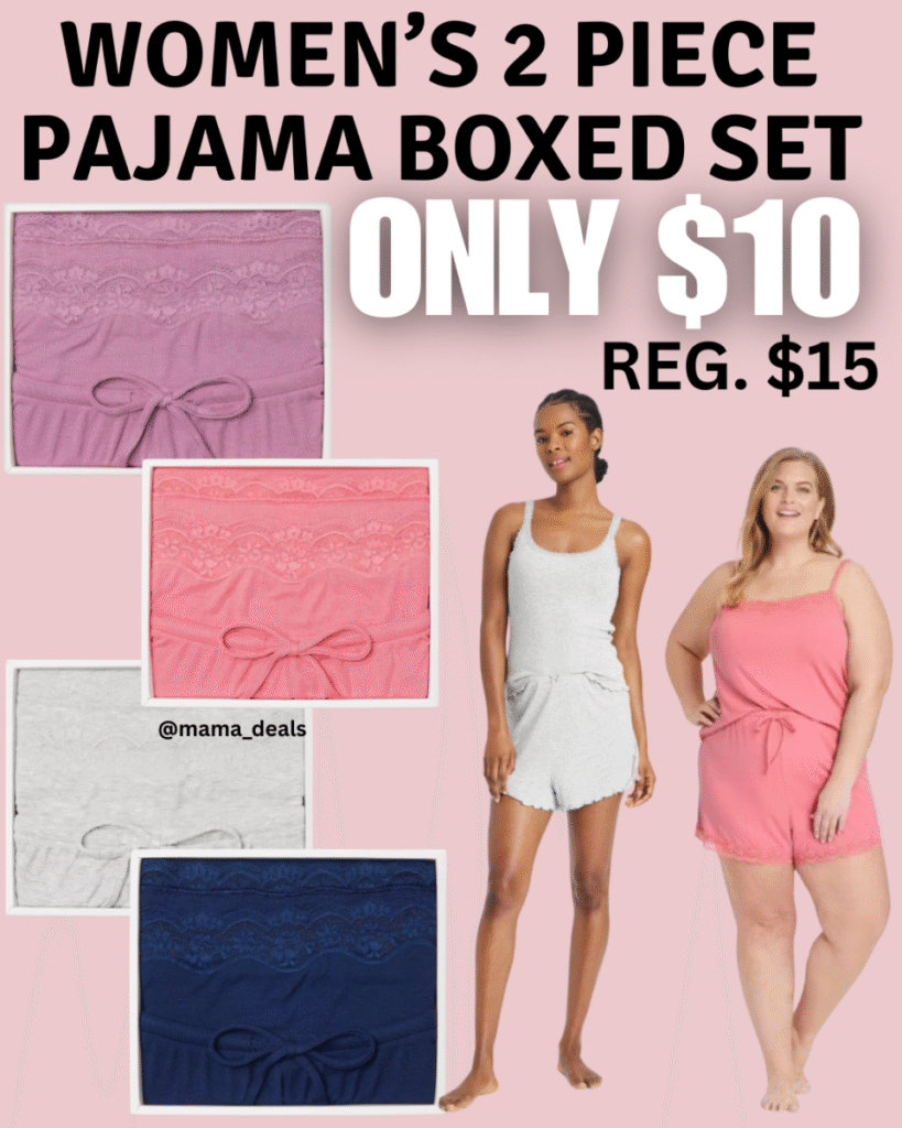 $10.50 Women’s Lace Trim Ribbed Cami Top and Shorts Pajama Set – Auden