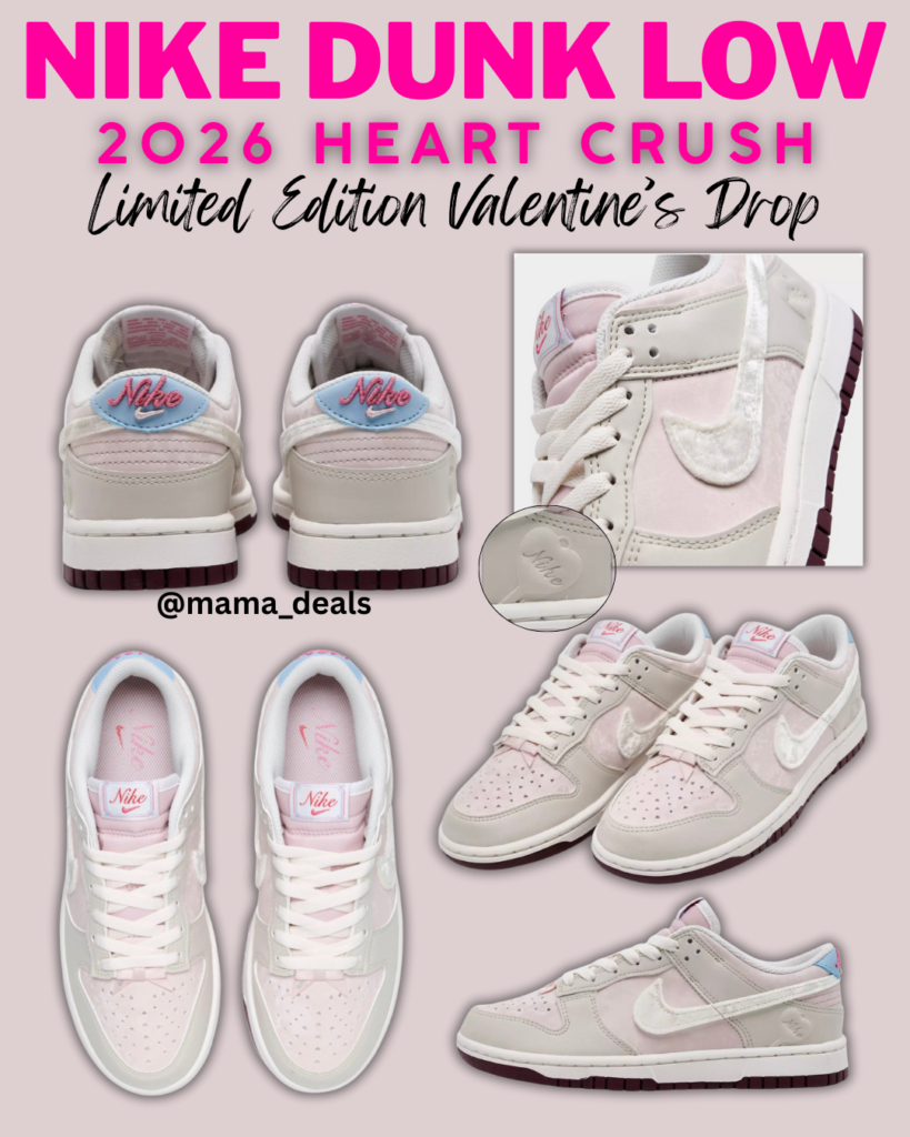 The Women’s Nike Dunk Low Next Nature Valentine’s Day Casual Shoes are now available at Finish Line for $130, and they’re already a must-have for sneaker lovers. This Valentine’s Day-inspired Dunk Low features soft pink and red tones, heart-style details, and the classic low-top silhouette that pairs perfectly with everyday outfits.