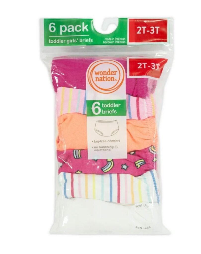 This Wonder Nation Toddler Girls Underwear Briefs 6-Pack is available for just $5.98 at Walmart. A great everyday essential for little ones, these soft and comfortable briefs come in assorted prints and are designed for all-day comfort. Perfect for stocking up on toddler basics at an affordable price.