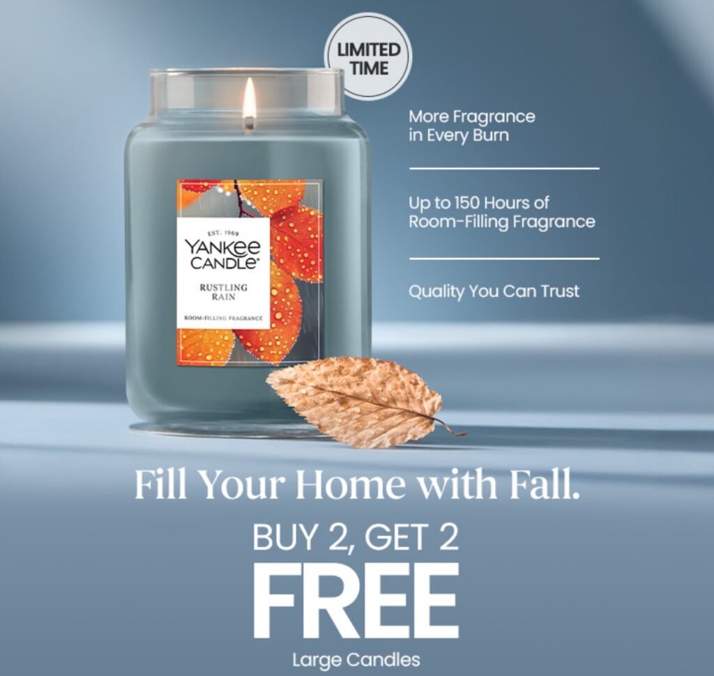 Yankee Candle is running a Buy 2, Get 2 Free promotion on select Original Jar Candles. This is the perfect time to stock up on your favorite scents or try something new. With four candles for the price of two, you can refresh your home, gift a few, or prepare for the upcoming season.